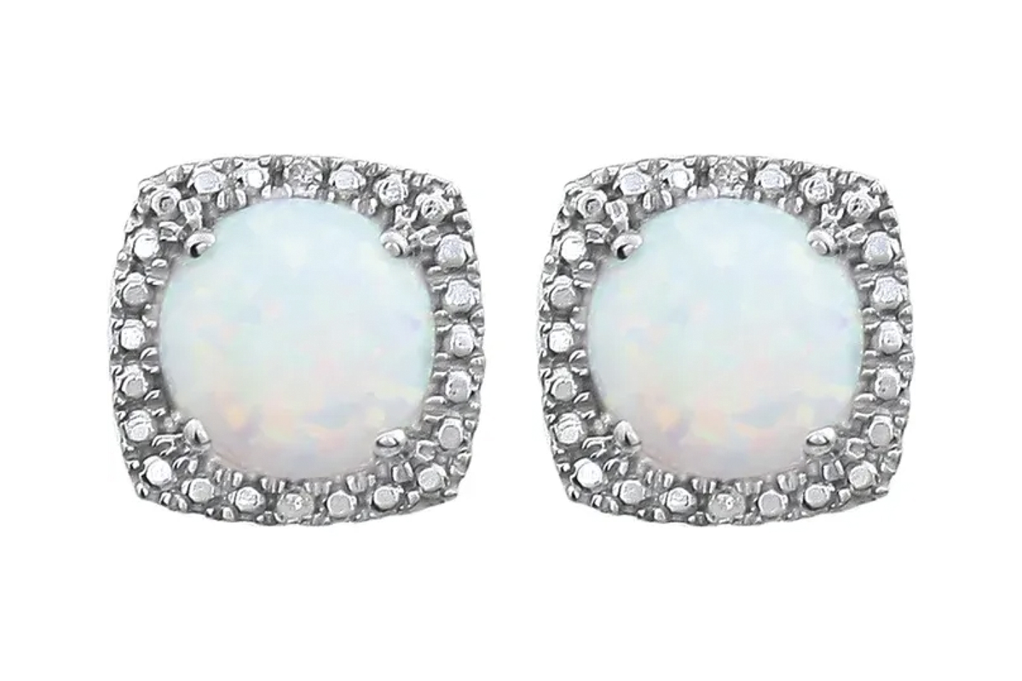 (919) 725-3444Sterling Silver 0.015ctw Created Opal October Birthstone Earrings Diamonds